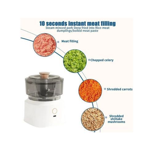 【Quality Material】: Electric mini garlic chopper with button opening, simple usage, metal handle, humanized handle design, more convenient to take, disassemble the whole machine, easy to clean, thickened food grade cup body material, transparent food can be seen clearly.
