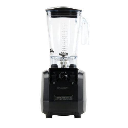 Great for smoothie and juice bars, the Hamilton Beach HBH550 Fury™ countertop drink blender produces 64 ounces of a blended beverage. To help users see the ingredients inside, its polycarbonate container is marked with measurement indicators. Along with a powerful 3-horsepower motor, the blender has a Wave-Action® system that pushes ingredients towards the blades to ensure thorough processing.