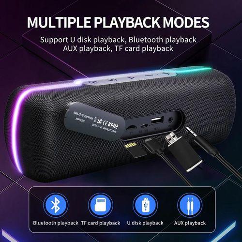 【Extend Playtime / RGB Party Light Show】 Quality battery adopted, S55 Bluetooth speaker with mircophone provide up to 20hrs battery life time and the wonderful coloring light pattern that shirning with powerful deep bass beat. Enjoyment both for hearing and vision.
