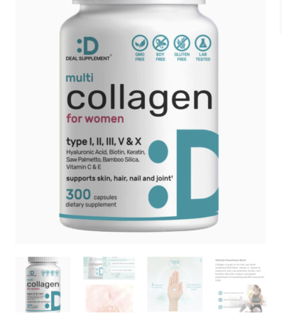 0 reviews for DEAL SUPPLEMENT Multi-Collagen Pills for Women with Vitamin C, E, & Biotin, 300 Capsules – 11 in 1 Formula with Saw Palmetto, Bamboo Silica, & Hyaluronic Acid – Hair, Skin, Nail, & Joint Health