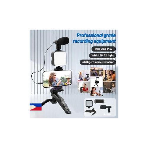 A nice Vlog kit with mini LED video light, condenser microphone, extendable phone clip, mini tripod, and remote control, the brightness of video light is adjustable, perfect for live streaming, Vlog recording, selfie, and more. Come and buy it now, it will surely bring you great using experience!