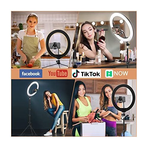 Ø 3-color modes Lighting: With 3-color modes (warm, cool, and natural light) and 10 levels of brightness adjustment, the large-sized ring light meets all your diverse needs on various occasions. The curved lamp cover enables the bulbs to give off diffuse light that causes no harm to your eyes while brightening up your face evenly, thus presenting your beauty or product details clearer in your live streaming