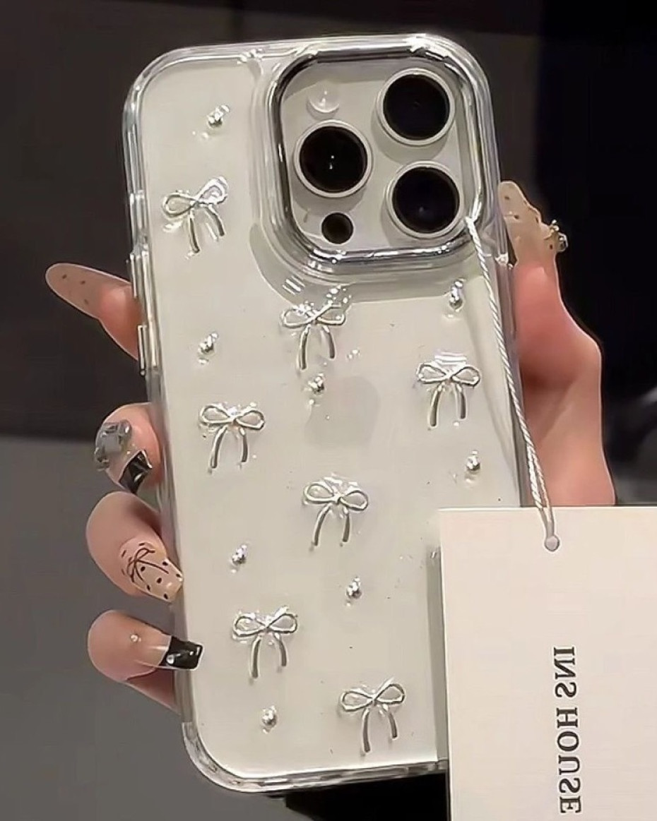 0 reviews for Transparent Glitters Silver Bow iPhone Case