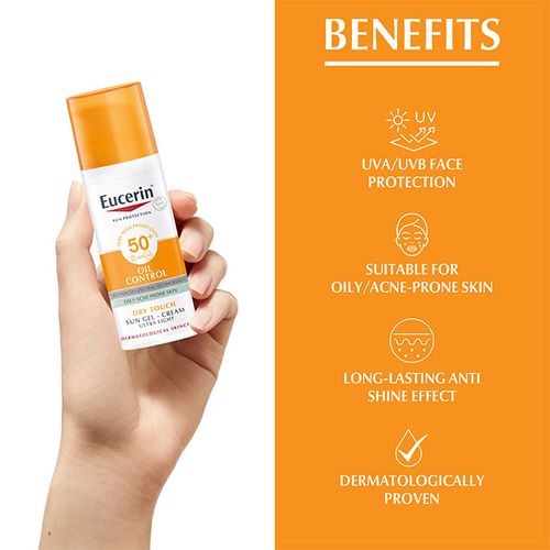 Eucerin Sun Gel Creme SPF 50+ protects oily and acne prone skin from sun-induced skin damage