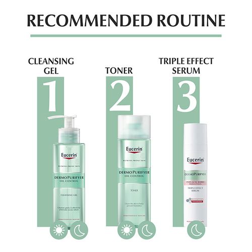 Eucerin DermoPurifyer Cleansing Gel is a daily-use, soap-free and fragrance-free formula for gentle, yet effective, cleaning for impure and blemish-prone skin. Containing 6% Ampho-tensides, it eliminates excess sebum (serbboreah) while removing dirt and make-up. Its anti-bacterial properties rid skin of bacteria and inhibit bacterial reproduction and, as it is non-comedogenic, it will not clog pores.