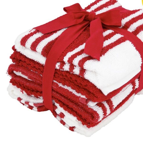 Add a splash of colour to your kitchen with our red and white tea towels. They’re soft and absorbent, so they’ll make light work of the drying up! 100% cotton. Warning: Keep away from fire. See label for washing instructions.