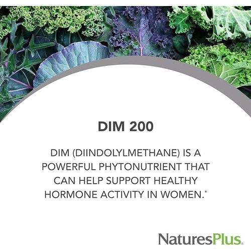 This dietary supplement harnesses the power of diindolylmethane (DIM), a plant-derived compound found in cruciferous vegetables like broccoli and cabbage.. DIM supports healthy hormone activity and metabolism and promotes normal estrogen levels. Embrace balanced hormone activity and support your body's natural defenses with NaturesPlus PRO DIM 200mg.
