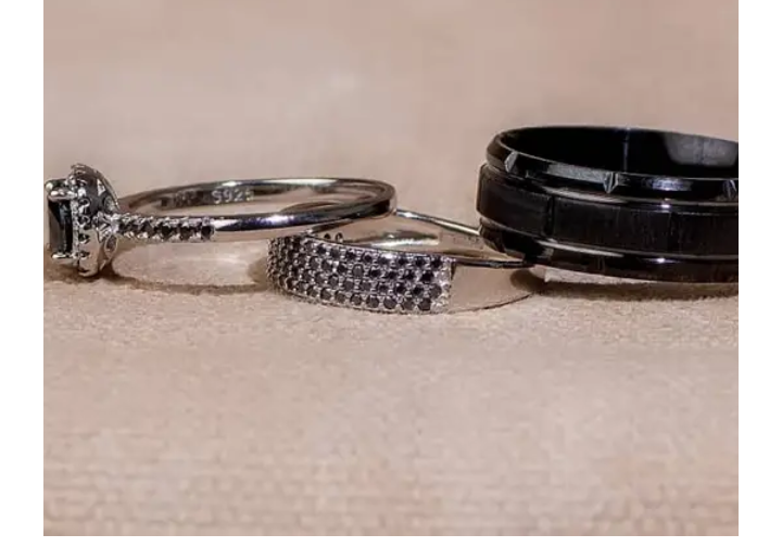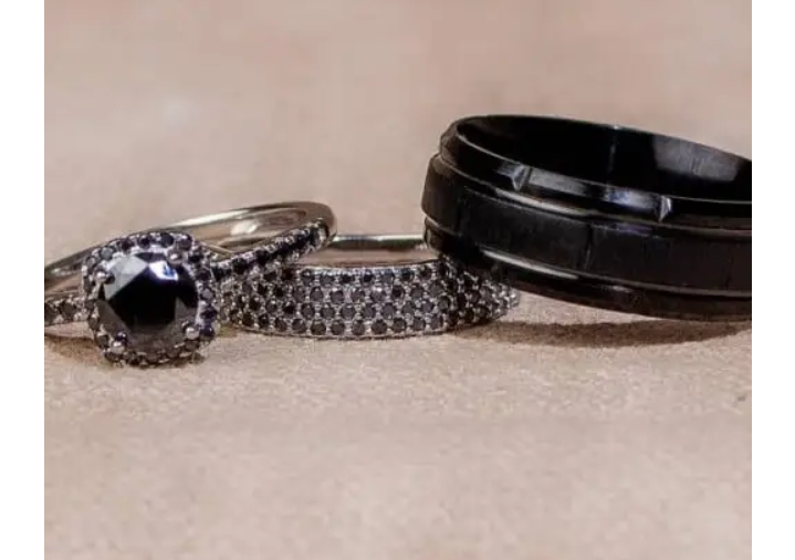 The Spa – Blossom Black Moissanite Set with Claude Titanium Male Band is a striking his-and-hers collection that combines elegance and durability. The women’s rings feature brilliantly cut black moissanite stones set in high-quality 925 sterling silver, arranged in the Blossom-inspired design for maximum sparkle and sophistication. Complementing the set is the Claude Titanium male band, crafted for strength, comfort, and sleek contemporary style. Perfect for weddings, engagements, or special occasions, this complete set blends modern design with timeless elegance.