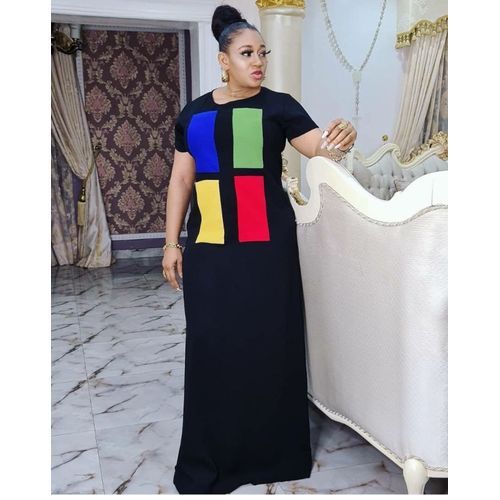 0 reviews for Luxury Short Sleeve A - Shape Dress - Black And Patches