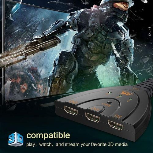 HDMI switch 4k:3 HDMI ports in and 1 HDMI out for various HDMI devices, has the key-press-switching function.