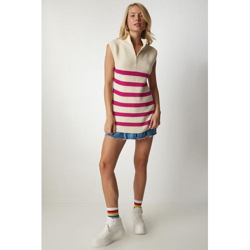 0 reviews for Trendyol Women's Cream Pink Zippered Collar Striped Sweater
