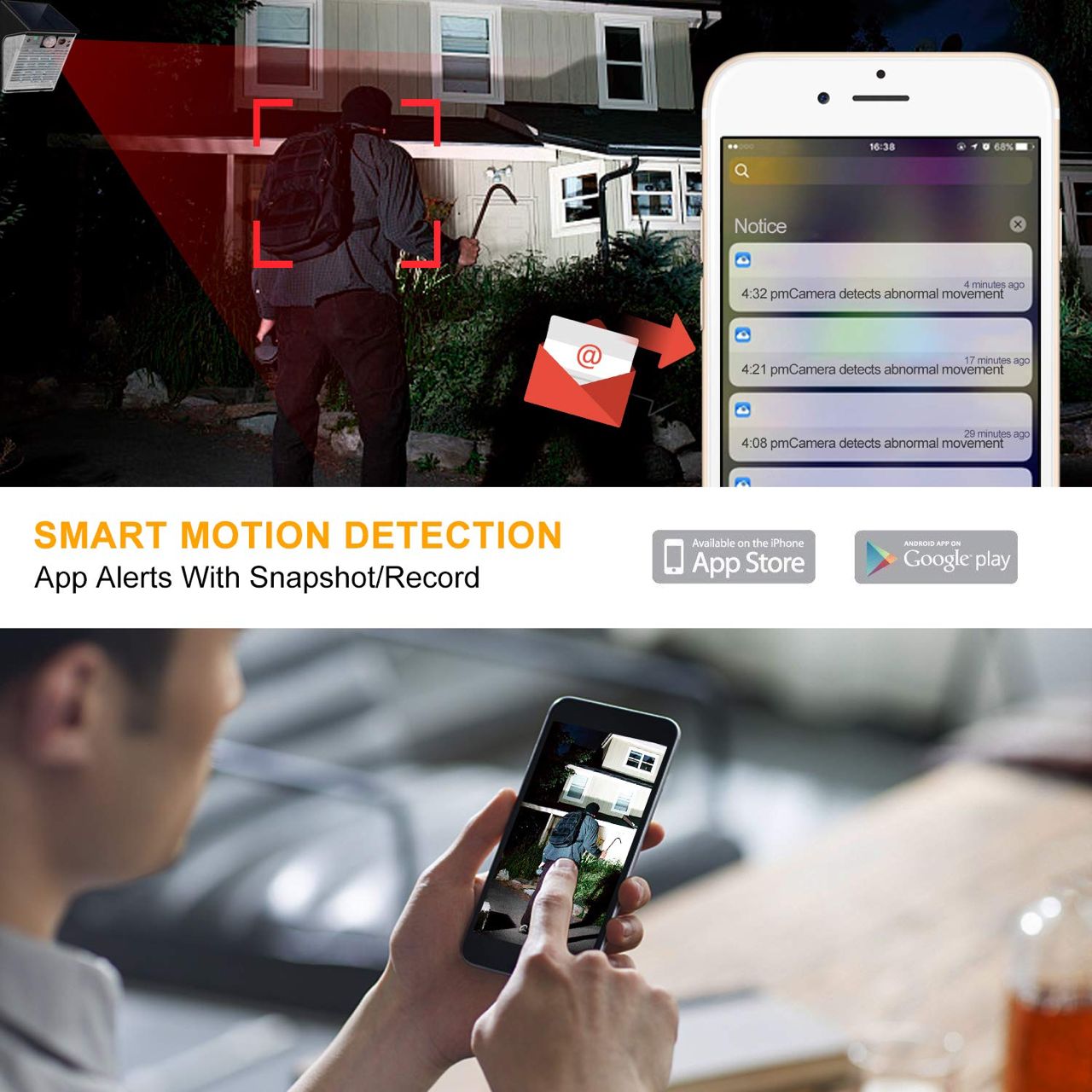 WIRELESS & SOLAR POWERED] Built-in 2500mah battery, the light and wifi camera is self-sustained by solar light panel. So you can enjoy the peace of mind not worrying about the expensive energy bills and annoying wires.