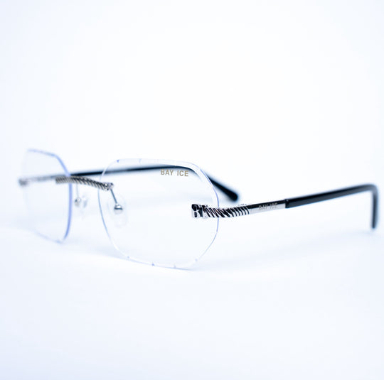 Discover the perfect pair and make a statement with Bay Ice Diamond Cut Rimless Glasses today