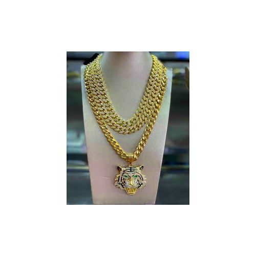0 reviews for Triple Bold Men Gold Cuban Link Chain With Lion Head Pendant