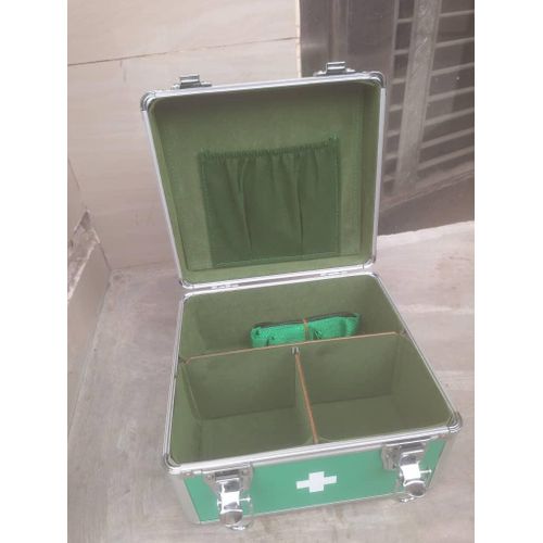 First Aid Box, Fully Equiped, Portable; also known as first aid kit, is a collection of supplies and equipment for use in giving first aid, and can be put together for the purpose by an individual or organization or purchased complete. WAEC approves and recommends that a school science laboratory should have at least one First Aid Box or Kit, fully equiped.There is a wide variation in the contents of first aid kits based on the knowledge and experience of those putting it together, the differing first aid requirements of the area where it may be used and variations in legislation or regulation in a given area.The international standard for first aid kits is that they should be identified with the ISO graphical symbol for first aid,