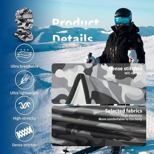 Easily transforms into balaclava, neck gaiter, headband, face scarf and helmet liner for different needs.