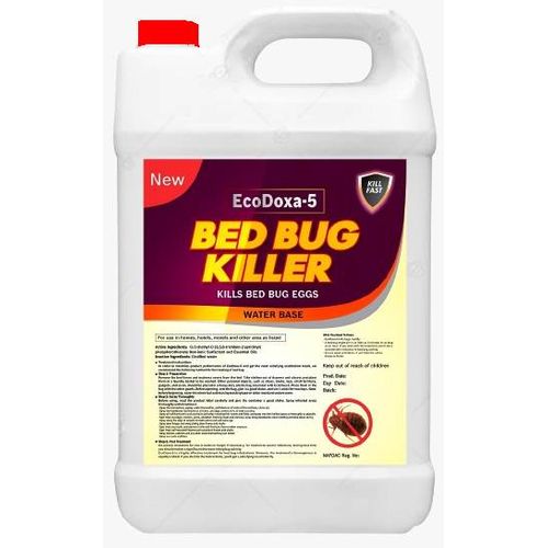 A water based bedbug pesticide with no offensive odur, highly effective with a good contact approach solution by spraying the infested areas. EcoDoxa-5 kills bugs, bugs eggs and nymph rapidly; A bed bug might die in as little as 1 minutes or as long as 5 minutes. If you stick with the treatment, you'll see a considerable reduction in bed bug activity.