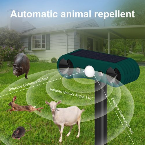 [Advanced Sensing Technology] : The alarm features an advanced sensor that can detect ultrasonic waves and trigger a white LED flashing light at night. With a motion detection range of 5-8m, it can effectively monitor your property and deter potential intruders or pests.