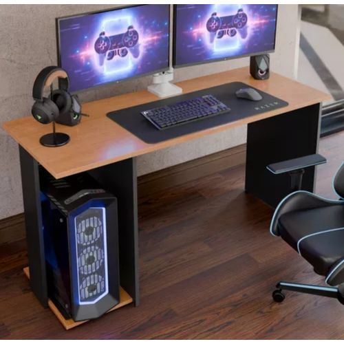 wood computer deskwooden tabletop, computer desk with bookshelf and mainframe, multi-function storage layer, can accommodate your textbooks, magazines, desktop computers, notebooks and other items.