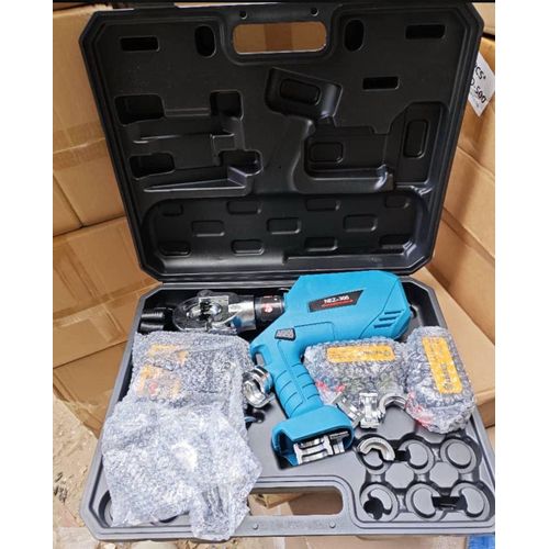 Design: The tool is battery-powered and cordless, making it portable for on-site work. The kit includes interchangeable dies for crimping different sizes of cables, typically ranging from 16 to 300mm².