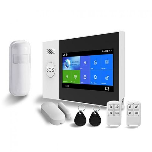 It comes fully equipped with a touchscreen control panel, door/window sensors, PIR motion detectors, remote controls, and RFID tags, offering extensive coverage of up to 99 wireless zones. Receive instant alerts via SMS, phone calls, and app notifications in the event of any intrusion.