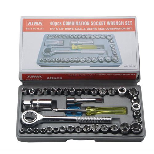 The 40-piece socket set contains the most commonly used standard and metric-sized sockets.