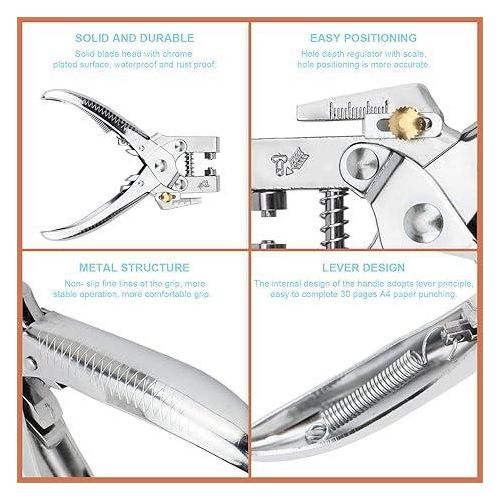 Scientific Structure Design: The force of the hole puncher head is relatively vertical transfer, so the effect is better than most scissors-shaped punchs. Built-in multiple springs to save your extra effort
