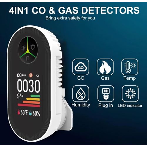 【4in1 CO & Gas detectors】Our newest combination 4in1 detectors Integrated carbon monoxide, combustible gas, temperature and humidity sensors, real time to detector the environment gas safety for us.