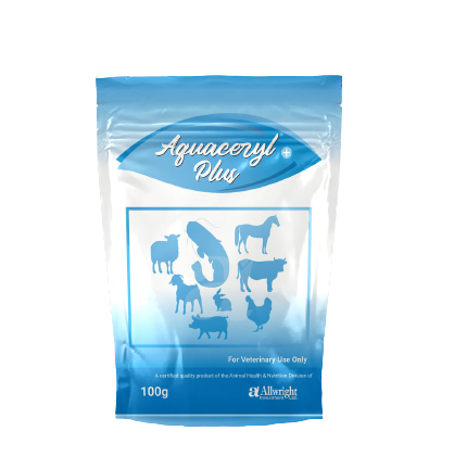 Aquaceryl Plus | 100g is broad-spectrum and highly effective in prevention and treatment of diseases caused by gram-positive and gram-negative bacteria such as Ulcer Diseases, Mouth disease, Coldwater diseases, Bacterial Hemorrhagic Diseases, Open Red Sore, Pop Eye, Fin and Tail Damage, Swollen Abdomen Furunculous, Vibriosis, Enteritis,