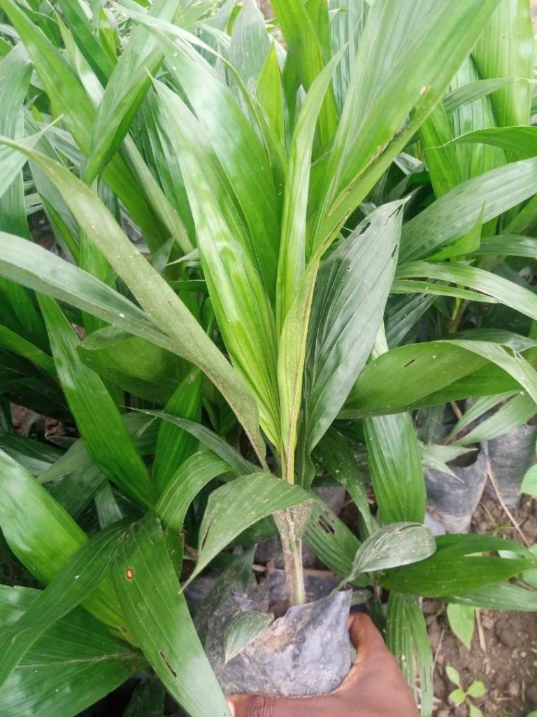 Oil Palm (Hybrid Tenera) Seedling) is the only type of oil palm that can produce large amounts of oil is the hybrid general type. All seeds from good companies are of this type. The cross between the dura and pisifera palms is a hybrid called genera. Hybrid tender fruits have a thin shell and the palms produce up to 30 percent more oil than their parents!