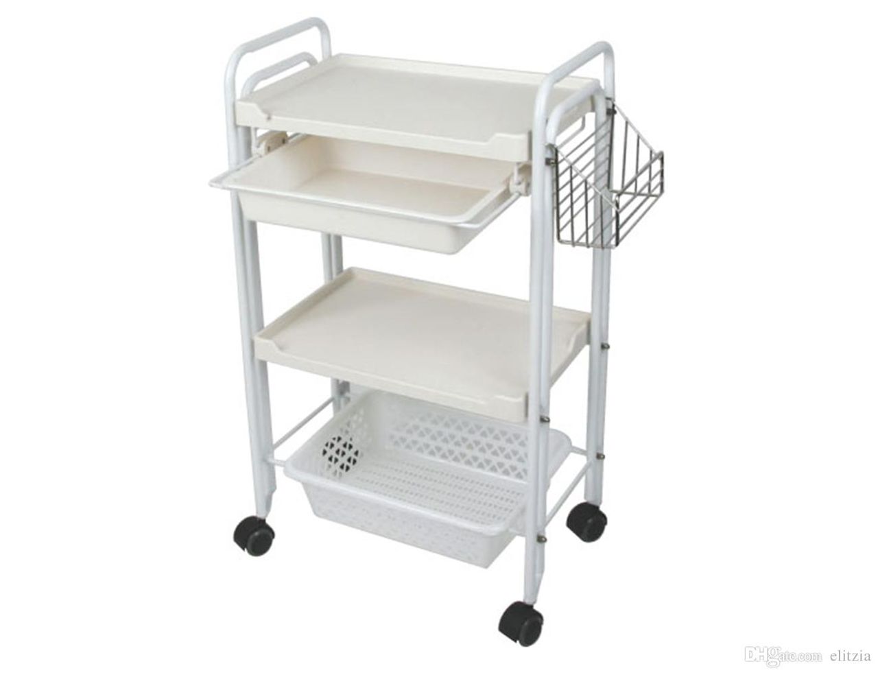 Simple-assembled three-storey trolley (Four corners), designed for use in the whole body beauty when used in the development of a special trolley. Carts are popular as bearers of salon supplies and beauty Salons (mini sprayers). Furthermore, the attached drawer is convenient to use.