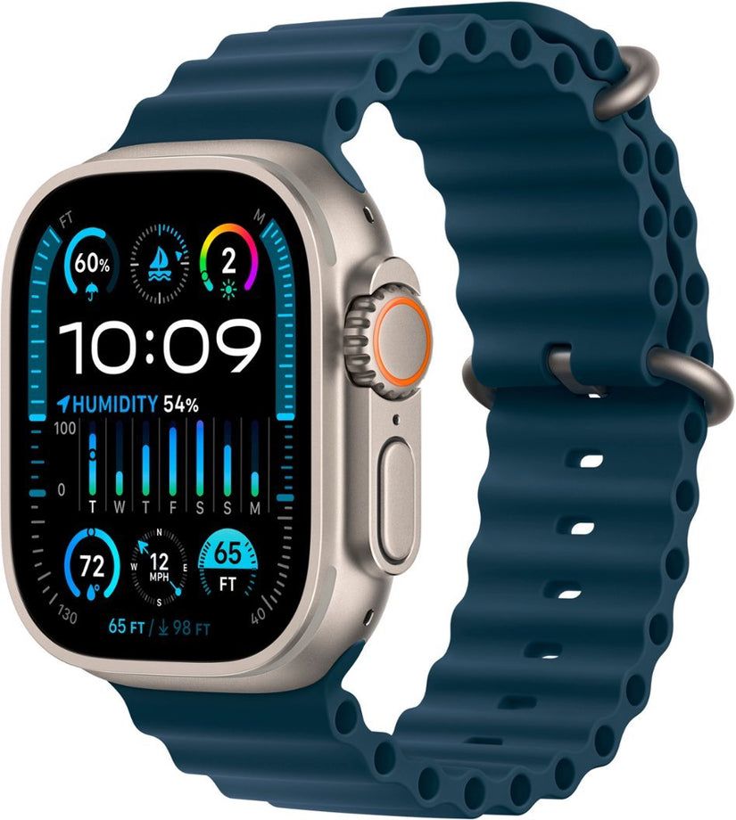 EXTREMELY RUGGED, INCREDIBLY CAPABLE—49mm corrosion-resistant titanium case. Large Digital Crown and customizable Action button for instant control over a variety of functions. 100m water resistance.
