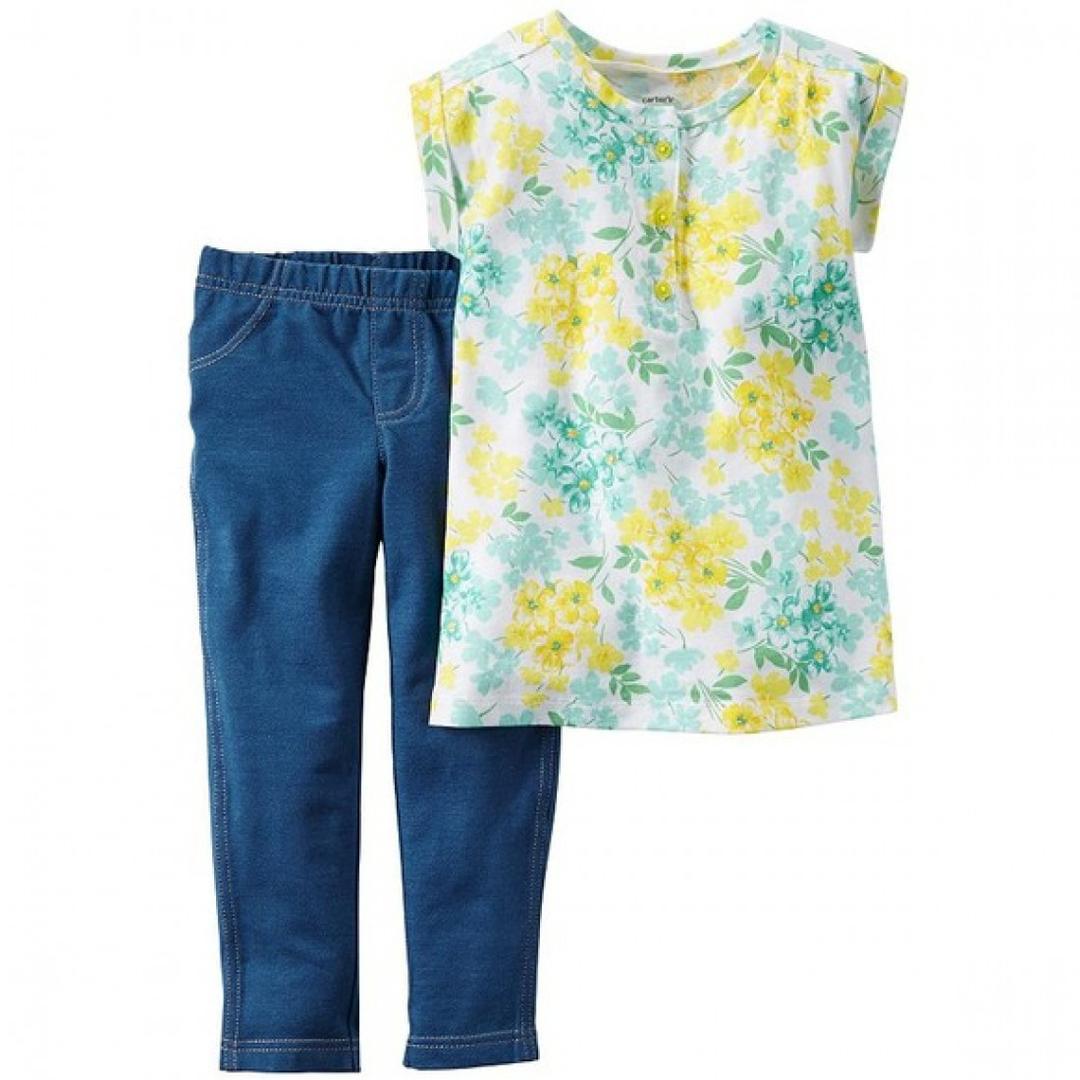 Give her a sweet playtime look with this girls' Carter's floral top and jeggings set. In yellow/multi. 2-piece set includes: top & leggings